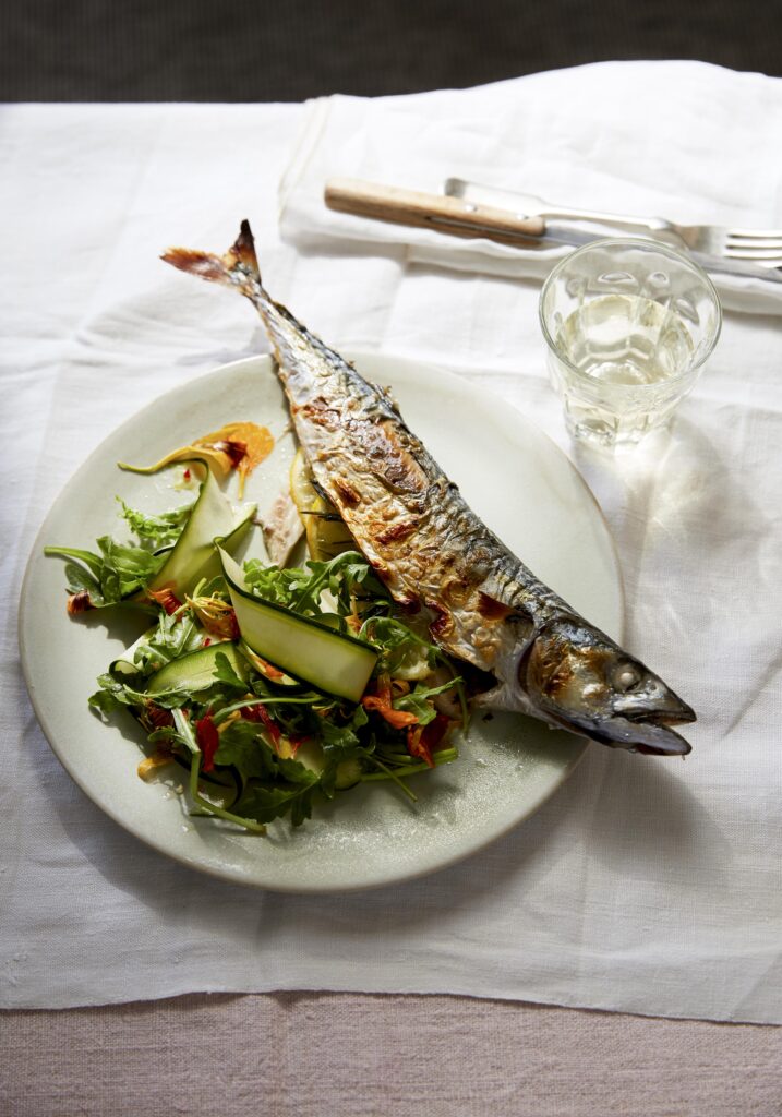 RECIPE 1: Port Isaac mackerel with a raw salad of courgettes, chilli, nasturtium flowers and rocket, find it here.