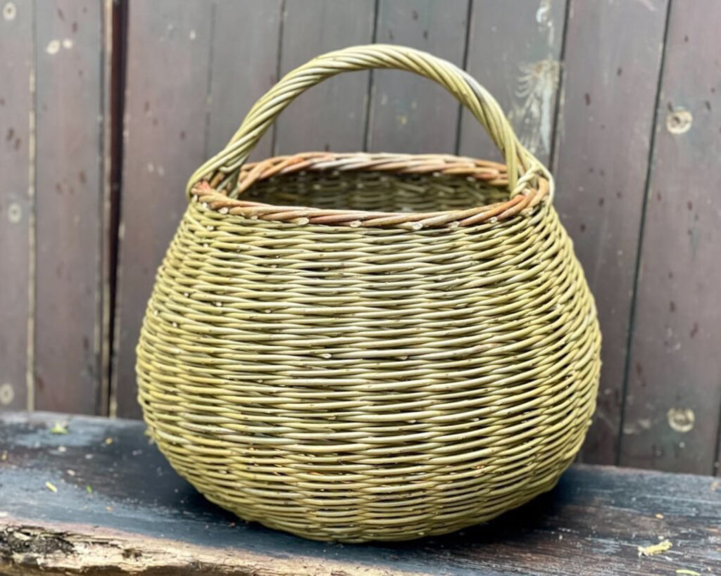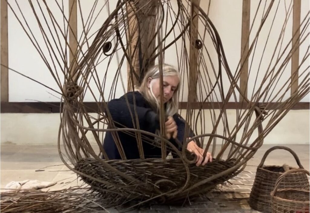 The wide base of the Waled Ken creates a very stable basket in the woodland environment we lived and worked in. We lived in a caravan in the woods and then yurts. Basketmaking fitted perfectly into that lifestyle. I had tried ceramics the same year I leaned basketmaking. The forms of my early baskets were inspired by my inability to control clay on a wheel. But (I was) able to weave willow rhythmically and with control…”