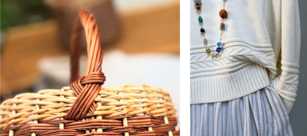 Meet Catherine Beaumont, a basket weaver from West Sussex who still uses the traditional English technique of tying the willow “underfoot”, rather than the more popular Continental method of splitting the central slath sticks to create the basket base which is gradually taking precedence because it is easier to make. Similarly to my knitwear, she believes in the importance of keeping these traditional British crafts alive for future generations to appreciate.